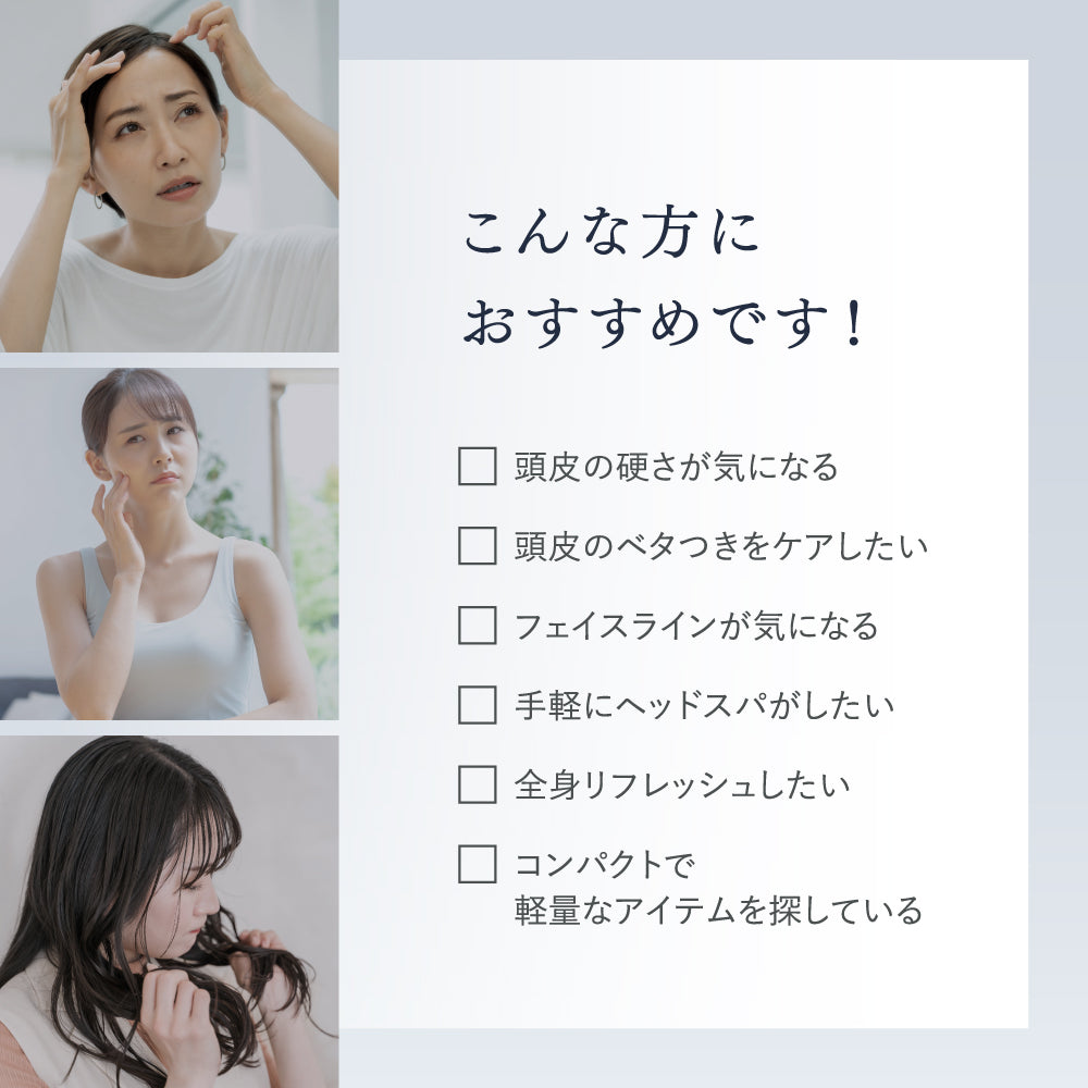 髪に絡みにくくしっかり頭皮をつまみ上げ揉みほぐし、首や肩、気になるボディケアにも気持ちよくお使い頂けます。プロのヘッドスパサロンのような体験をご自宅でできる本格ヘッドスパ。詰まった頭皮の汚れを綺麗に洗い流します。正しく頭皮をケアすることによって美しい髪と美肌へ導きます。