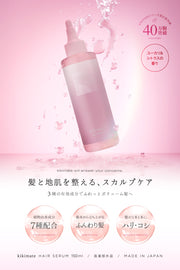 kikimate(キキメイト)ヘアセラムはデリケートな女性の頭皮に着目した女性用育毛剤です。トリプル有効成分が根元からふわっと立ち上がるボリューム髪へ導き、さらに7種の植物由来成分が頭皮をしっかりと保湿。潤いに満ちた地肌へ。