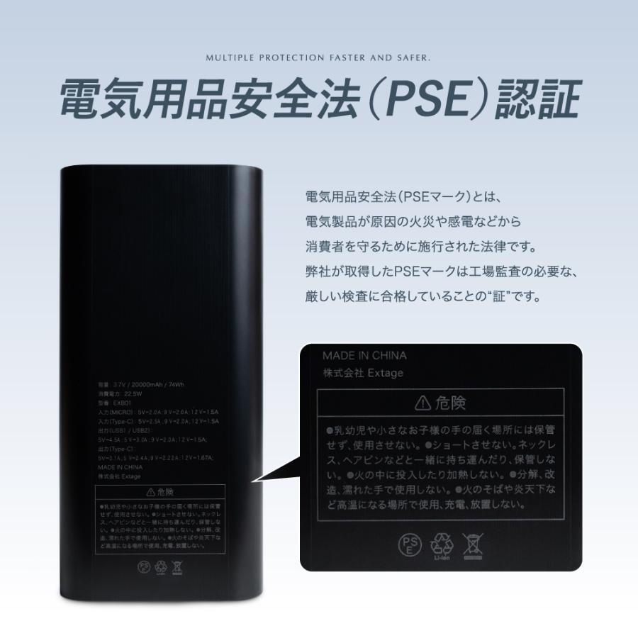 Excitech(エキサイテック)のバッテリーは、電気用品安全法(PSE)に基づく安全基準に適合。