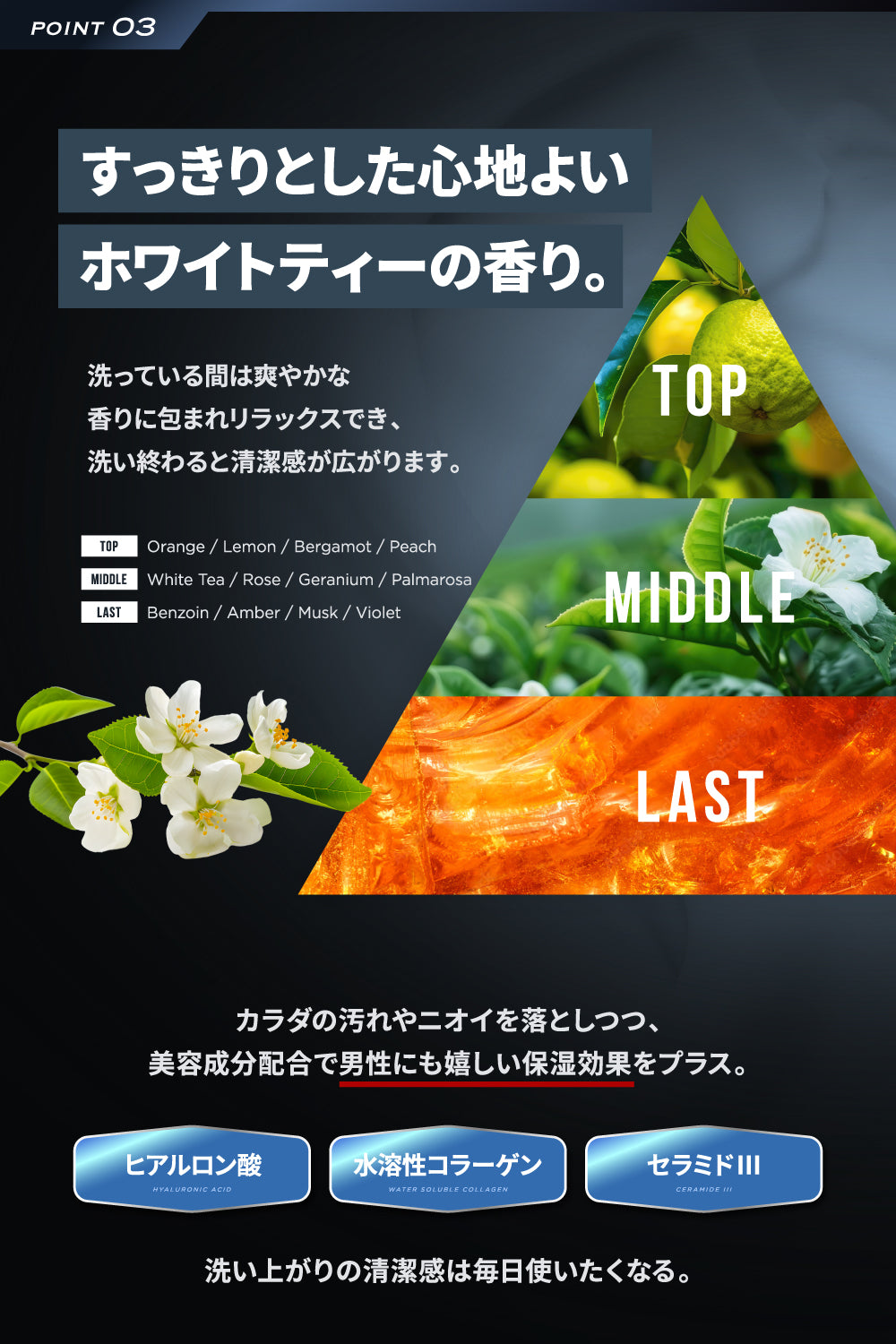 ホワイトティーの香りで、さっぱりとした洗い上がりに。