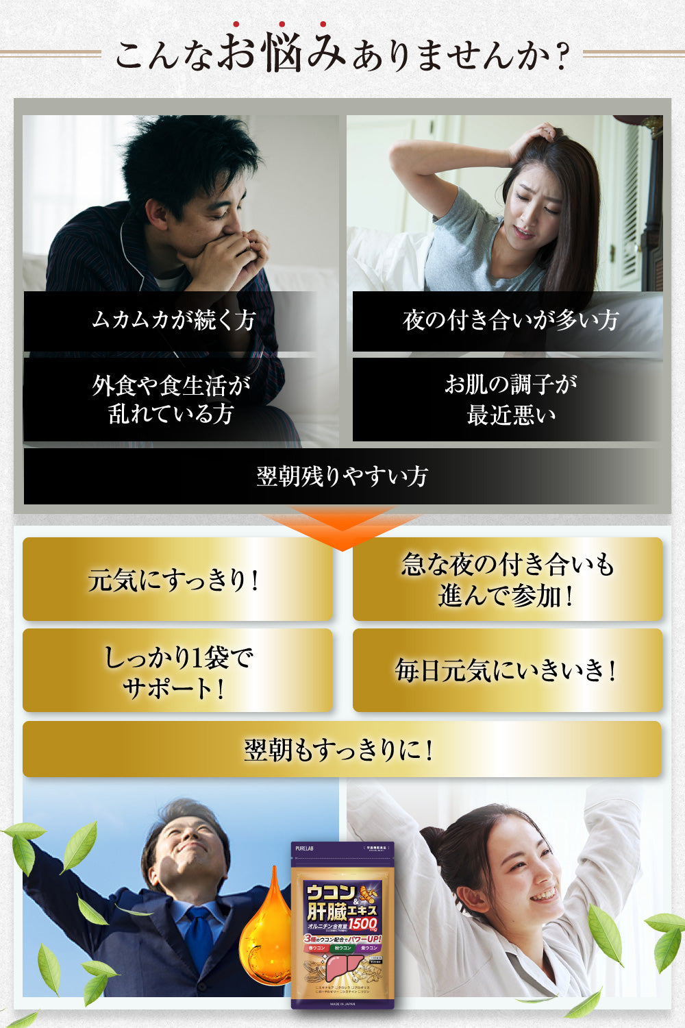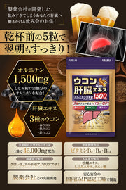 ウコン、クロレラ、エキナセア、マリアアザミ、牡蠣エキスなどの成分を多数贅沢配合しております。