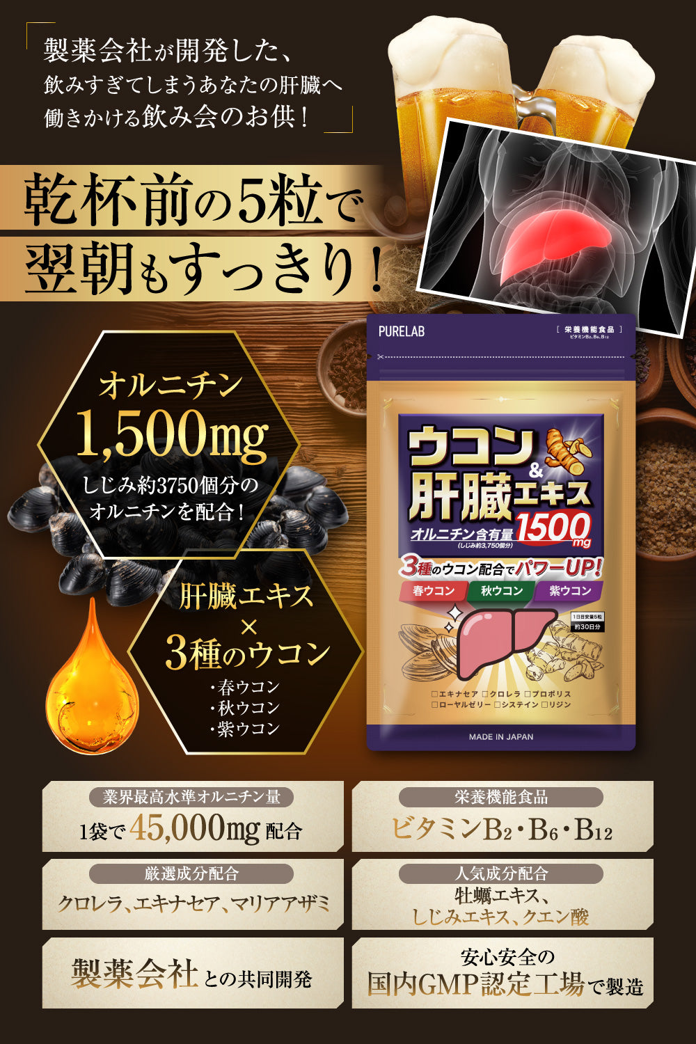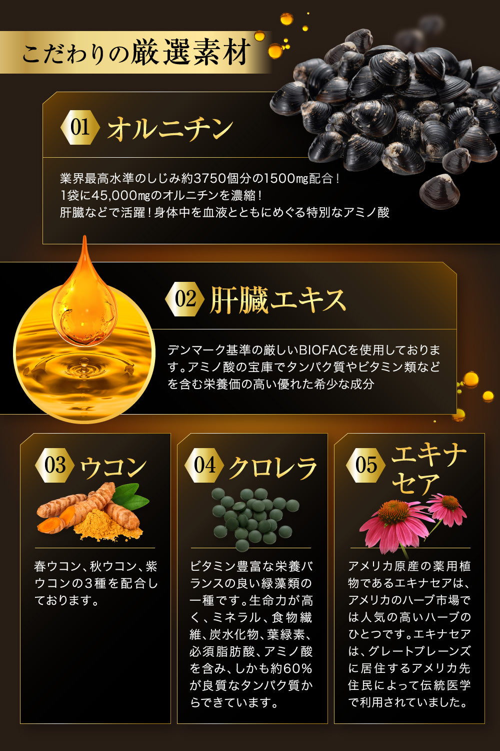 オルニチンを1日5粒で約1,500mg、肝臓エキスも摂取頂けます!
