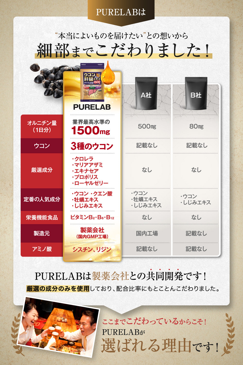 PURELABは製薬会社と共同で開発致しました!「本当に良いものをお届けしたいとの想い」から成分量はもちろん原料選定、処方にもこだわり、GMP認定の工場で製造しました!