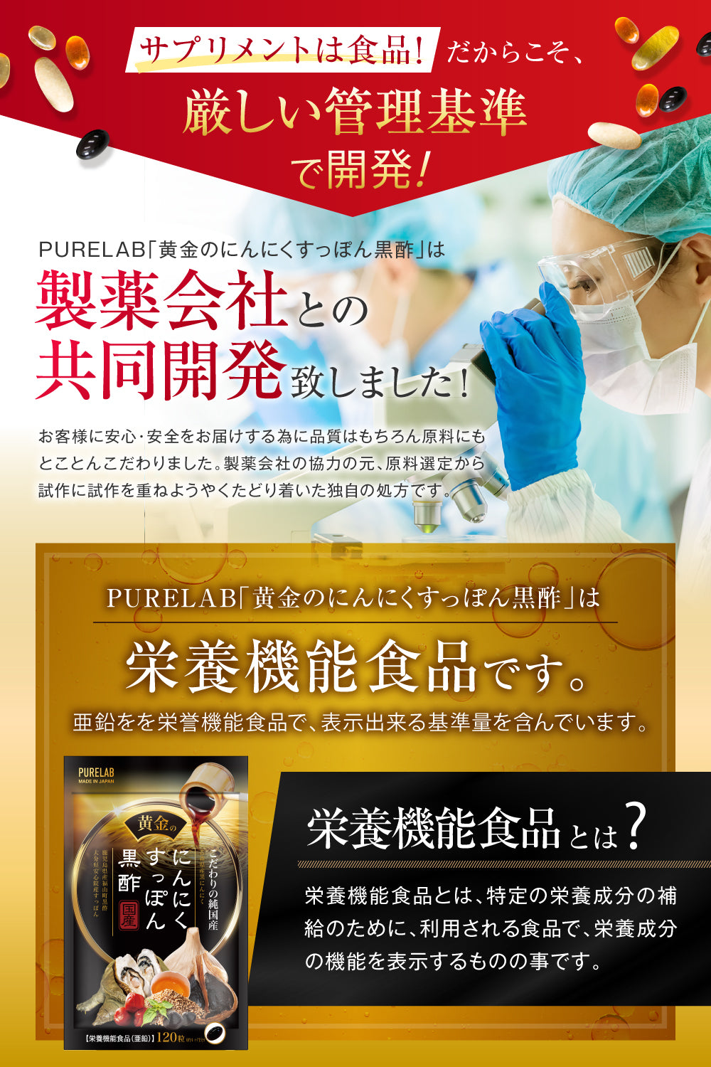 【黄金のにんにくすっぽん黒酢は製薬会社との共同開発した栄養機能食品です】