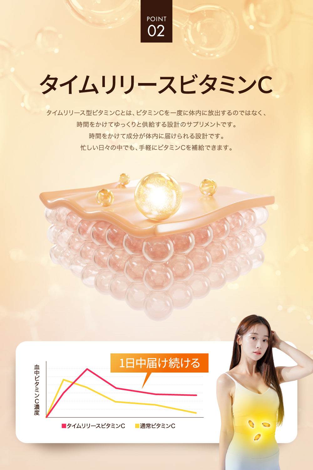 リポソーム技術を採用し、ビタミンCを効率的に体内に届ける設計をしています。